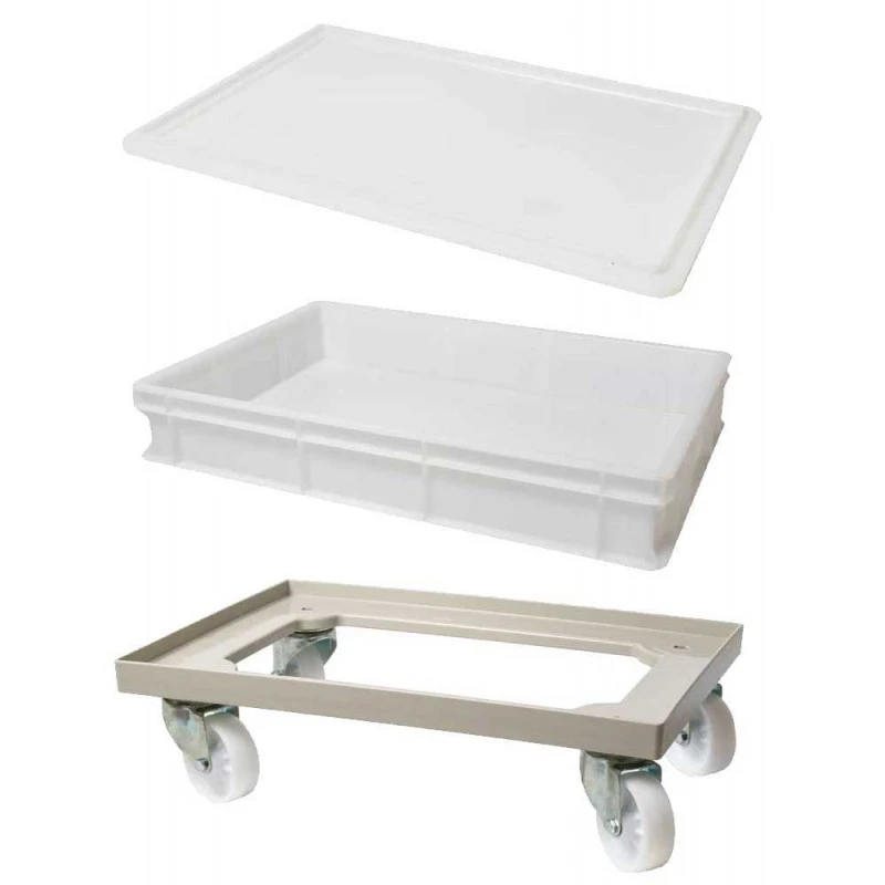 Kit 5xcontenitore per panetti con 1 coperchio e 1 carrello. Misure 60×40 cm.