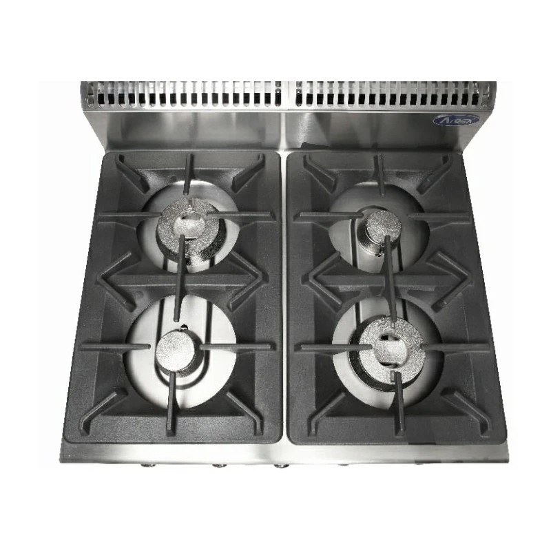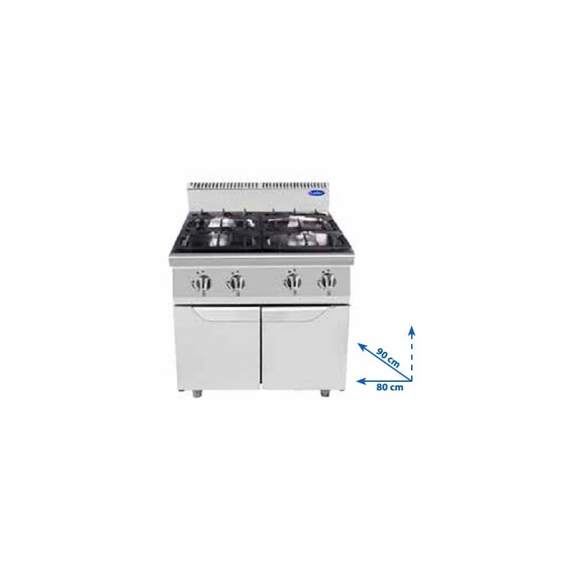 Cucina professionale a gas 4 fuochi da 12 kW/h. Profondità 90 cm.