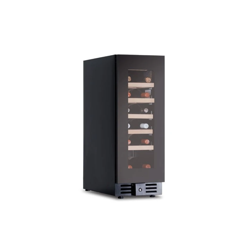 Frigo vini ventilato con porta a sfioro senza cornice, regolatore di temperatura elettronico, mensole in legno