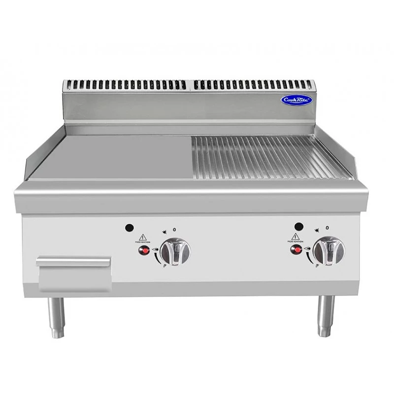 Fry Top da banco a gas metano convertibile in gpl con augelli inclusi. Liscio o Liscio/Rigato