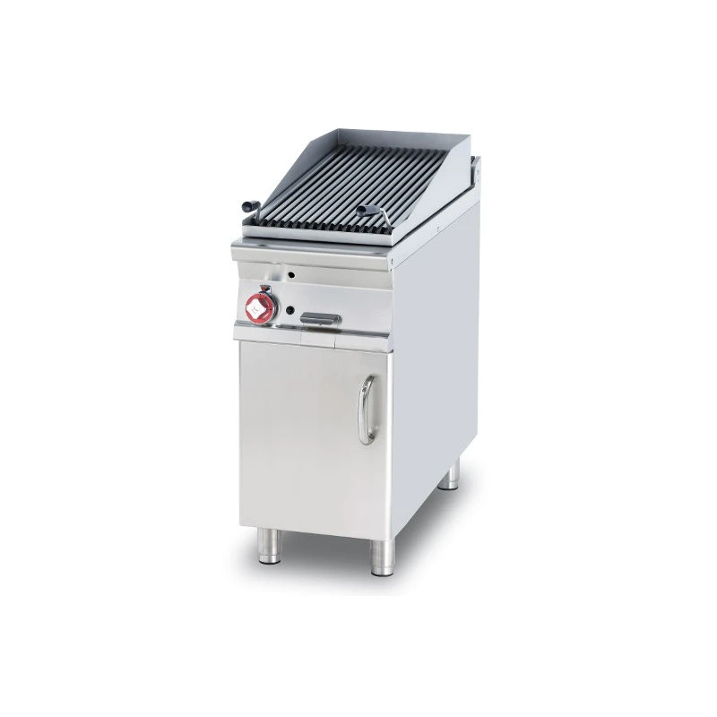 Griglia a gas con pietra lavica su mobile a giorno porte escluse. Profondità 90 cm. Superficie Griglia 38×66 cm. Potenza 12 kW – 10.320 kcal/h