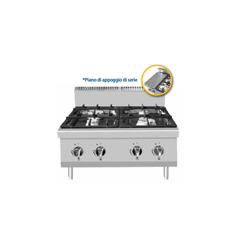 Cucina professionale a gas 4 fuochi da 2 x 3,5 kW/h + 2 x 7 kW/h.