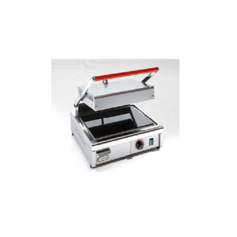 Piastra panini e toast singola in vetroceramica. Disponibile con base liscia e coperchio liscio, base liscia e coperchio rigato, base rigata e coperchio. Made in Italy