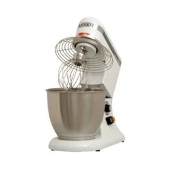 Planeteria professionale ba banco, capacità 7 litri. Testa sollevabile. Variatore elettronico di velocità con trasmissione a cinghia ed ingranaggi.