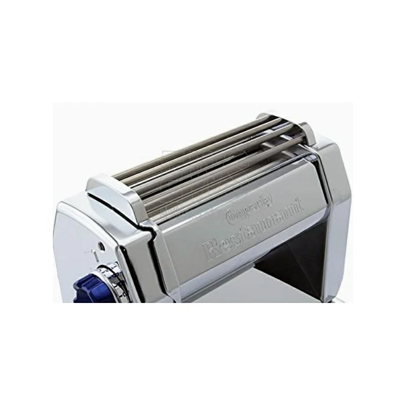 Sfogliatrice elettrica professionale per pasta con struttura in acciaio inox AISI 304. Ideale per laboratori e ristoranti. In grado di produrre una sfoglia da 21 cm con possibilità di applicare le trafile per ottenere vari tipi di pasta. (NON INCLUSE)