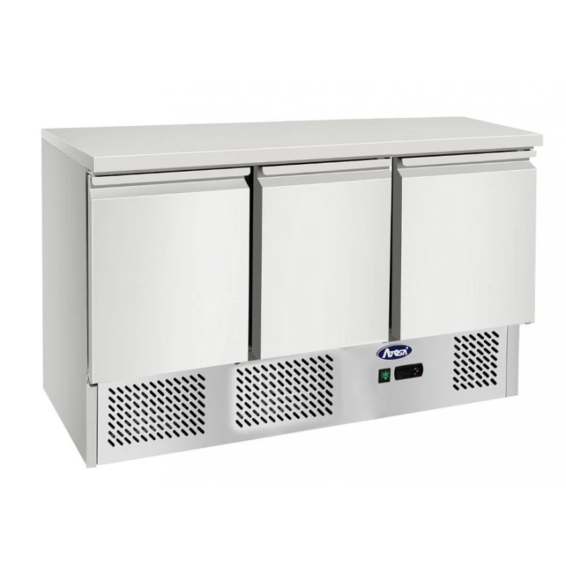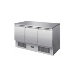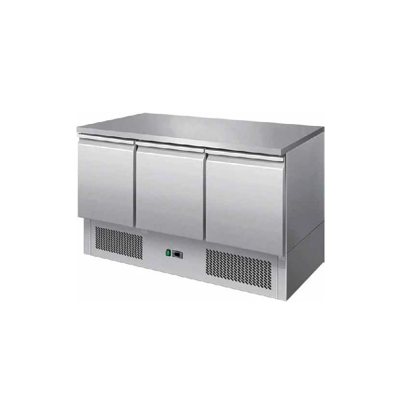 Saladette 3 porte. Dimensioni: 1365 x 700 x 943 mm. Capacità: 380 Litri. Temperatura: -2°C/+8°C