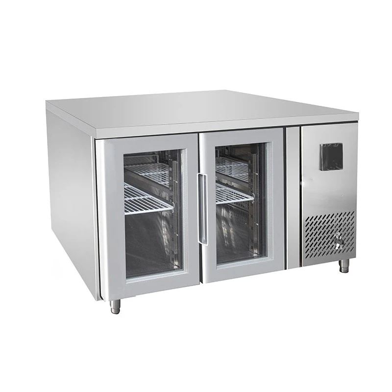 Tavoli frigo con griglie GN1/1 e porta in vetro. Dimensioni 1360 x 700 x 850 mm. Litri 280.