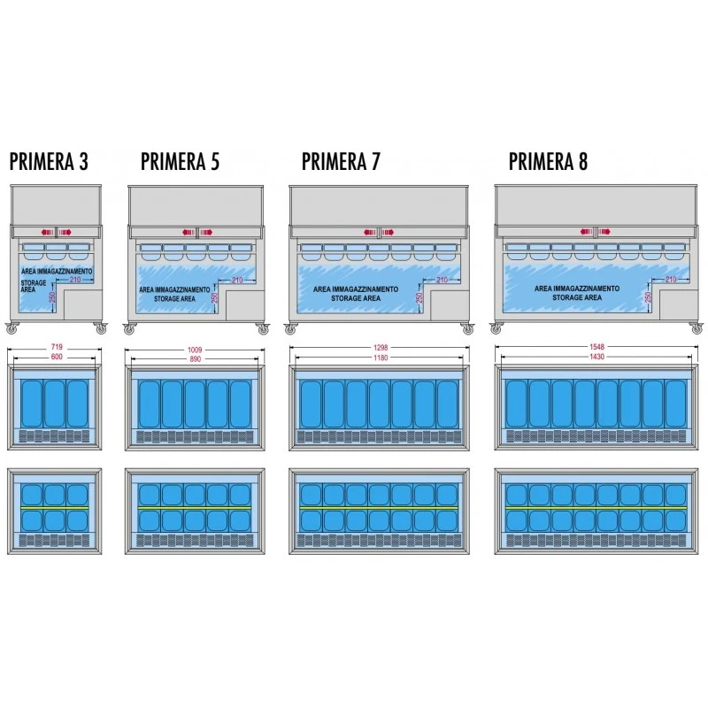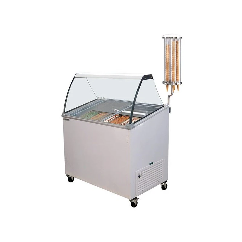 Vetrina gelato 8 gusti con vetro curvo. Sbrinamento ed evaporazione Manuale. refrigerazione statica. Vaschette escluse da (2,5 Litri x16) o (5/7/9 Litri x8)